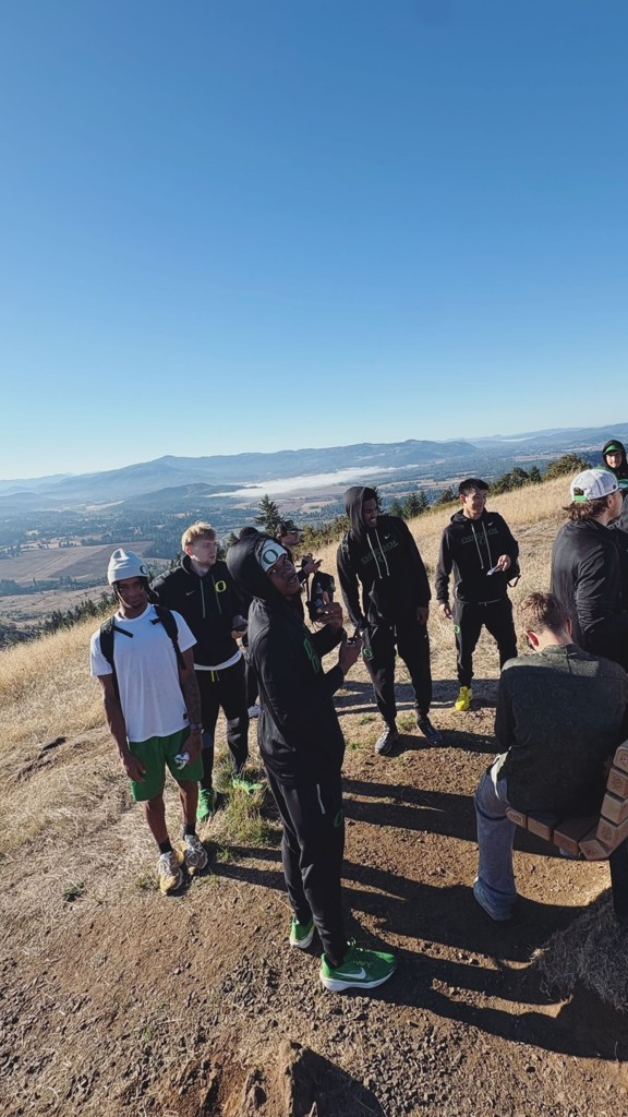 9月24日讯 俄勒冈大学男篮队员德兹德里克-林赛更新Instagram快拍动态,晒出一张和队友们一起爬山的照片,中国球员林葳在列,穿上了统一的服装,上脚科比4耐高配色(耐克总部在俄勒冈州,耐克是俄勒冈大学的长期赞助商)。