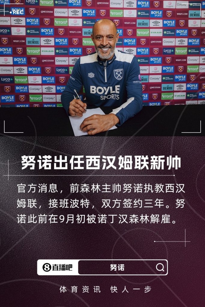 09月27日讯 官方消息,前森林主帅努诺执教西汉姆联,接班波特。双方签约三年。