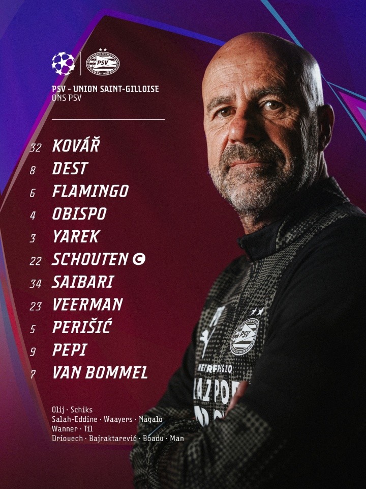 09月16日讯 9月17日凌晨0:45,欧冠首轮,埃因霍温主场迎战圣吉罗斯。赛前双方公布了首发阵容,埃因霍温方面,36岁老将佩里西奇,威尔曼、德斯特等人首发出场,夏窗从拜仁加盟而来的小将万纳尔替补待命。